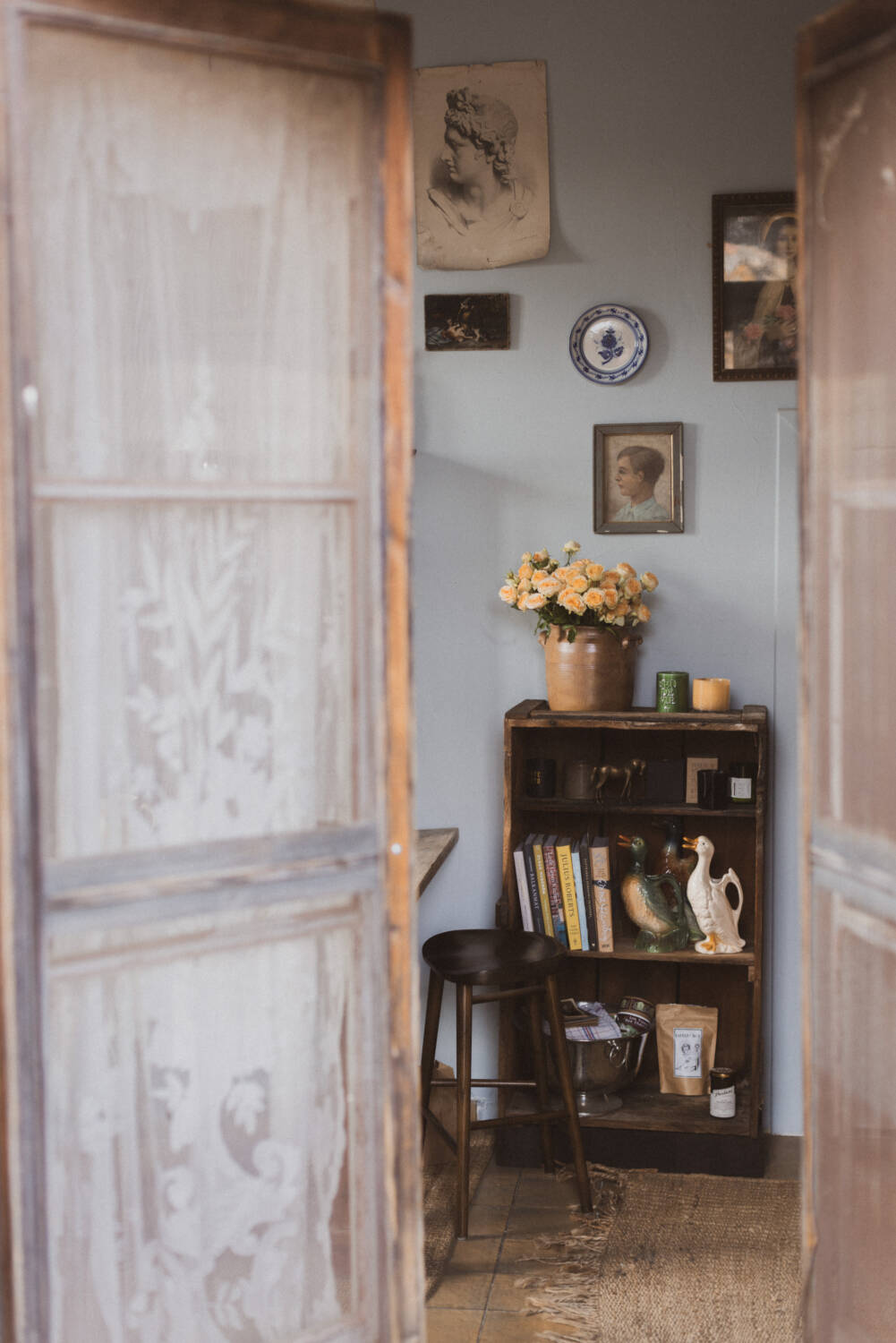 Alla väggar och tak är målade. Inredningen kommer från vintagemarkander och vintagebutiker i området.