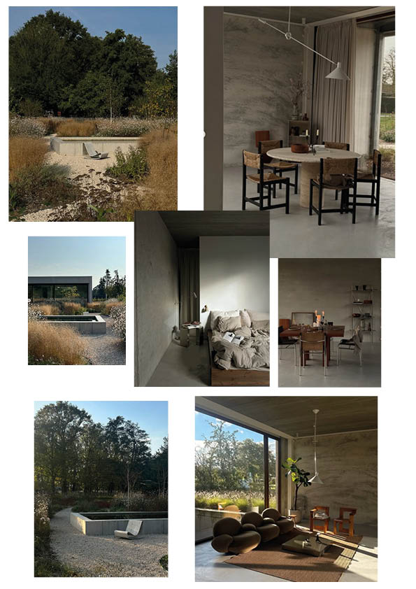 Drömmen hade varit en naturtomt och ett nybyggt hus. Som ovan moodboard. Minimalistiskt, lättskott, en liten enfärgad kapselgarderob, bara likadana tallrikar och glas i köket, smart förvaring i badrum, inte massa krafs överallt, högt i tak och en trädgård som flyter ut i naturen som på bilderna. Med en pool i natursten såklart och grus. Inget träddäck och loppisfyndade tavlor så långt ögat kan nå.