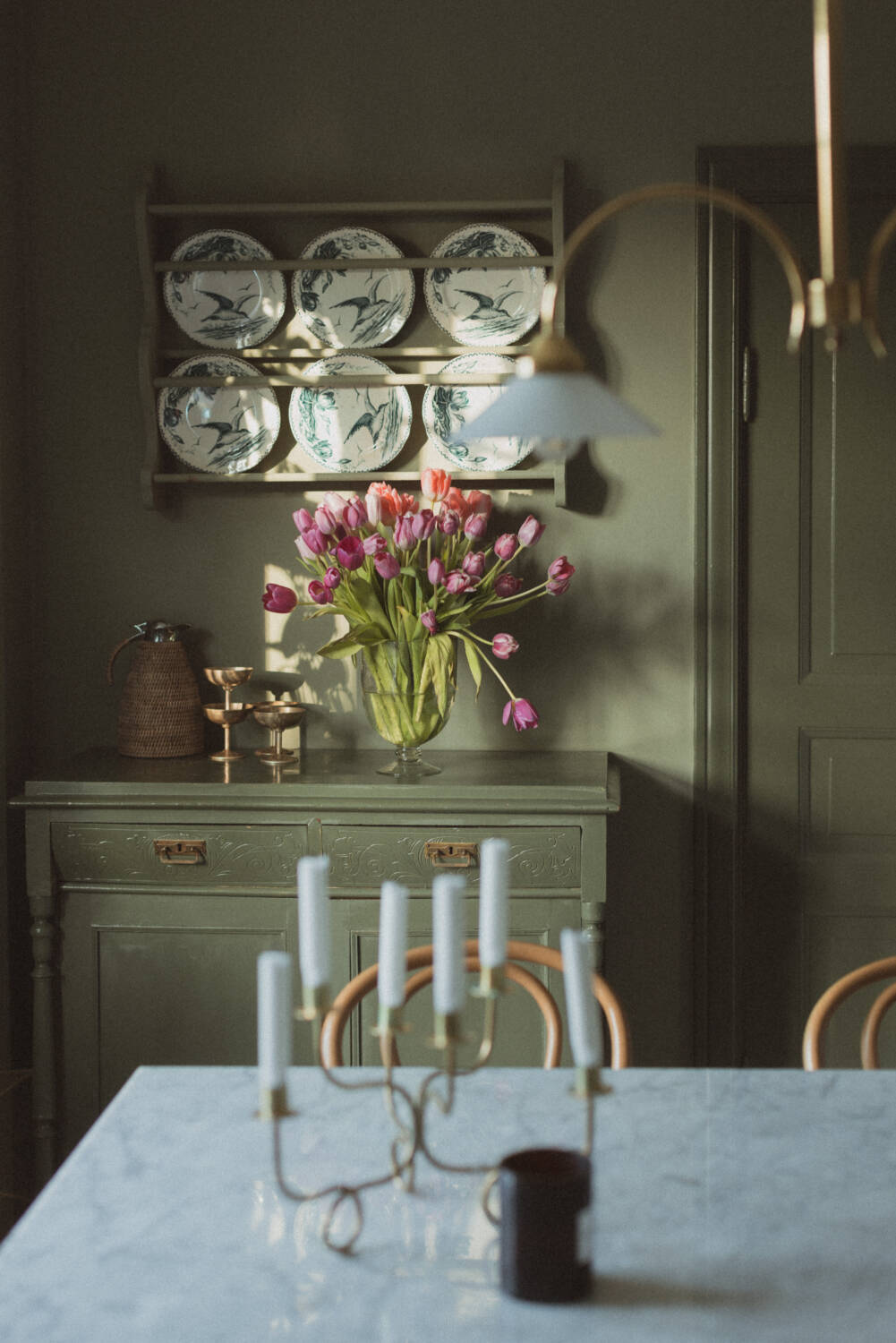 Vårt hus är byggt 1926 och är allt annat än minimalistiskt. Vi har bott här i över tio år och möbler, kulörer, belysning och konst har liksom smugit sig på under åren då man utsforskat och testat lite olika stilar. Haft olika ekonomiska förutsättningar och för att inte glömma, jag har använt detta hem mycket i mitt arbete och skapat rum efter detta. Till slut har det blivit en liten röra av grejer som bara hamnat utan en tanke och röd tråd.