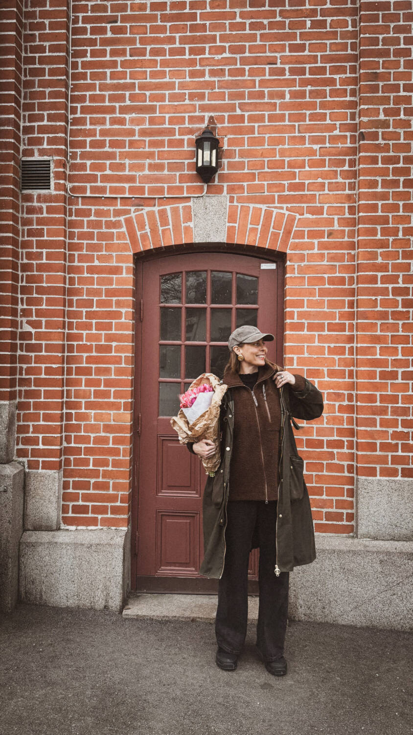 Svarta jeans, keps och min oljerock från Barbour. Min Minna Fleece från Astrid Wild har jag i flera kulörer och den bruna är just nu min favorit. Passar både som extra jacka och kofta.