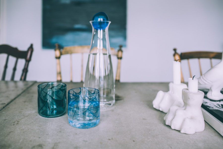 En annan sak. I lördags, mellan träning och bastubad, så slank jag in på Glashyttan i hamnen. Där är alltid så himla fint så jag måste verkligen återkomma med kameran en dag. Jag blev helt förälskad i de handblåsta glasen med mönster som påminner om vågor och i den fantastiska karaffen. De fick följa med hem. Älskar den här sortens unika hantverk och ska nu börja önska mig dessa glas så jag får ihop till en liten fin samling.