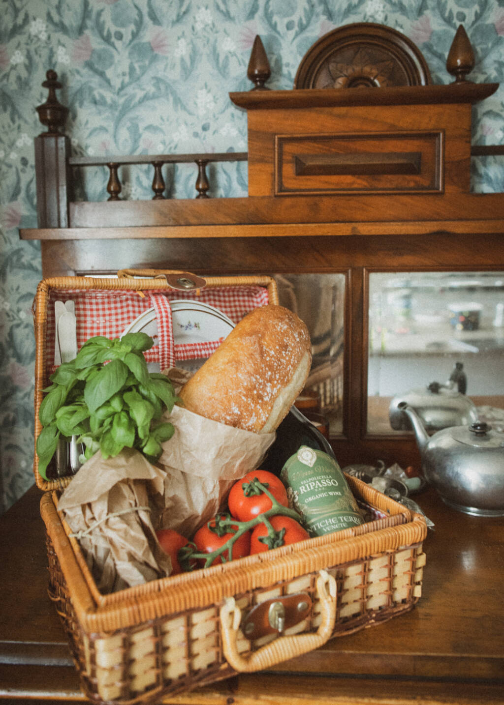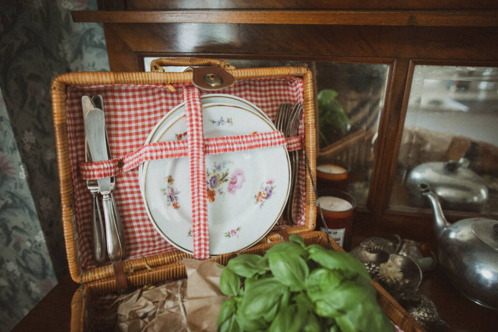Familjen Ehn kom förbi på poolhäng och pizza. de hade med sig en så fin gåva så jag var tvungen att knäppa ett foto. Loppisfyndad picknicväska.