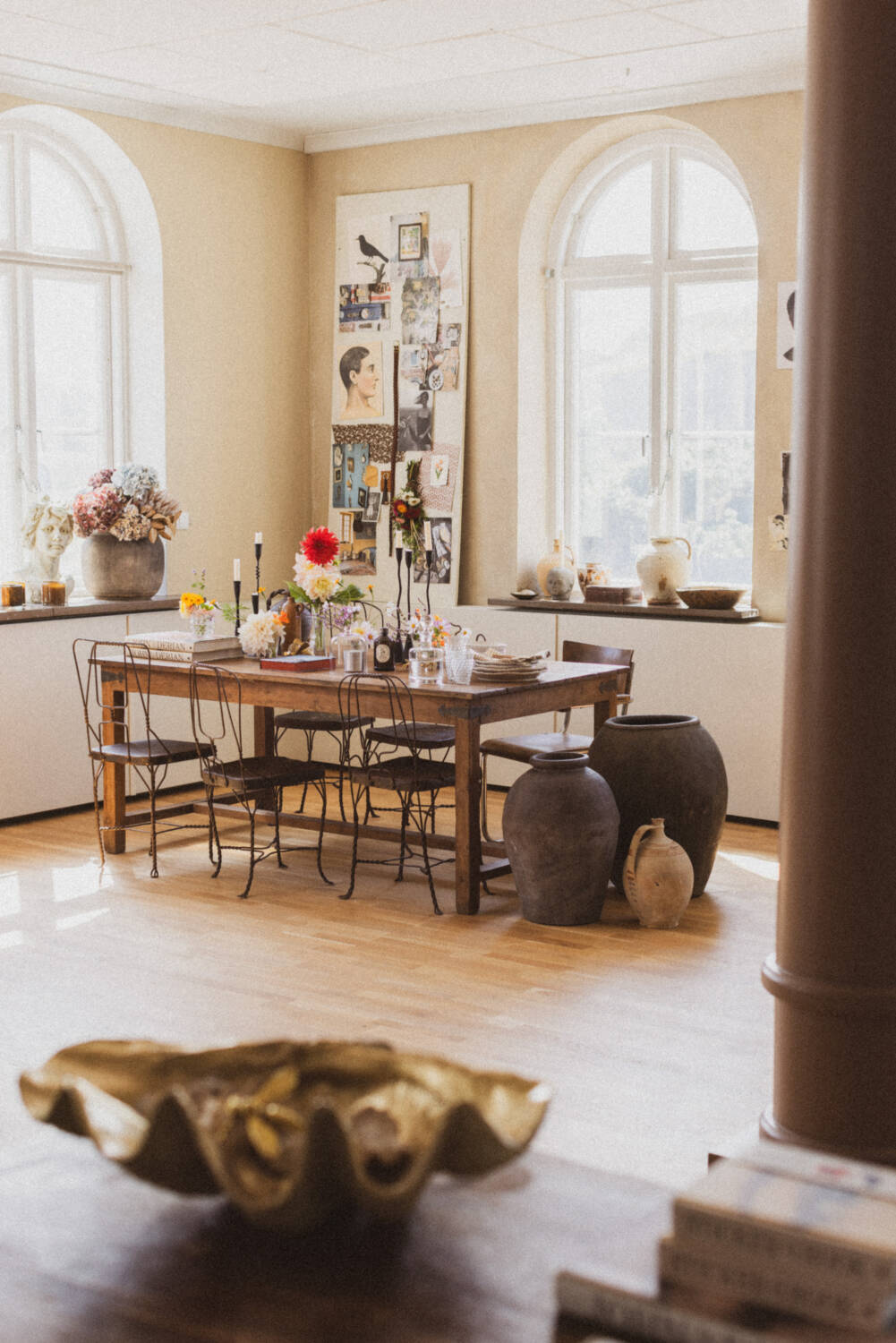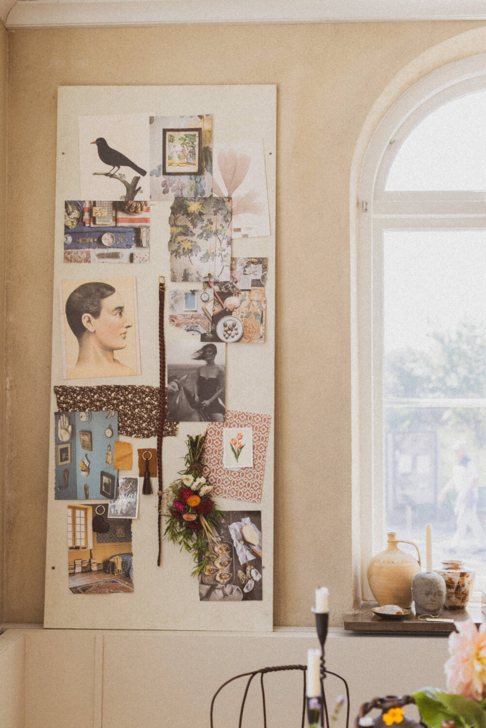 Medan jag väntar på kollektionen passar jag på att styla om butiken inför säsongen. Sensommarblommor på borden, högar med böcker, ljuslyktor och nya moodboards – härligt med lite förändring, det ger mig alltid energi.