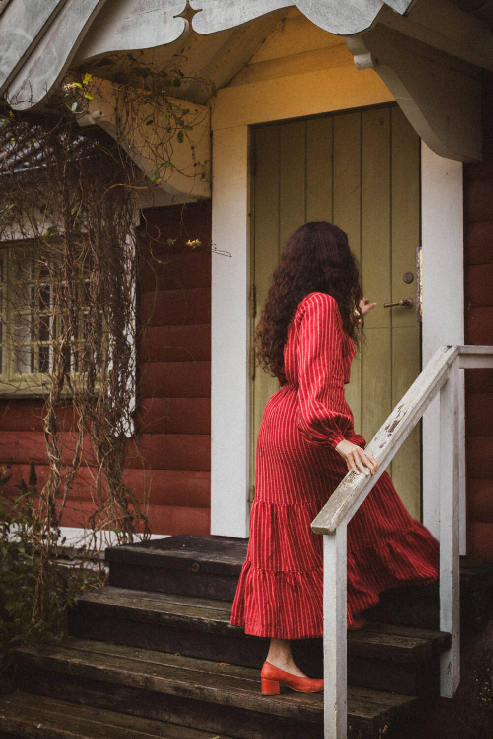 Detta är kjol och blus i sann Karin Larsson anda. Alla som lägger vantarna på denna stassen behöver aldrig mer fundera på vad hon kan bära på jularna hädanefter om du frågar mig.