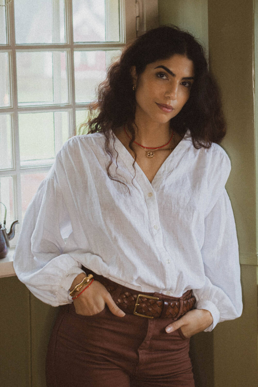 Vår klassiska och populära Dorthe blus kommer i vårt nya mönster också.