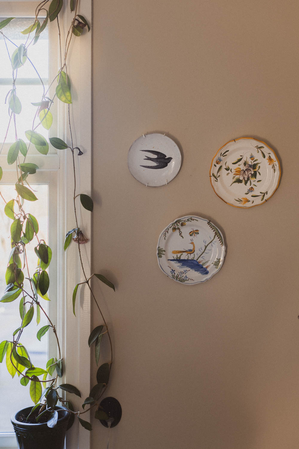 Jag hade också med mig en hel del vintage från Frankrike. Det mesta säljs i butiken, men två handmålade fat har fått flytta in hemma hos mig och hänger nu på väggen i köket.